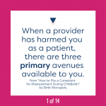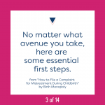 Last week as we were rolling out the “How to File a Complaint” manual, the group Life After 4th Degree Tears (private Facebook support group is here; follow them on Instagram here) contacted us to ask if they could put some money towards manuals and consultations for other people. Of course I said, absolutely, and we didn’t even have a chance to announce it before those donations were snapped up.